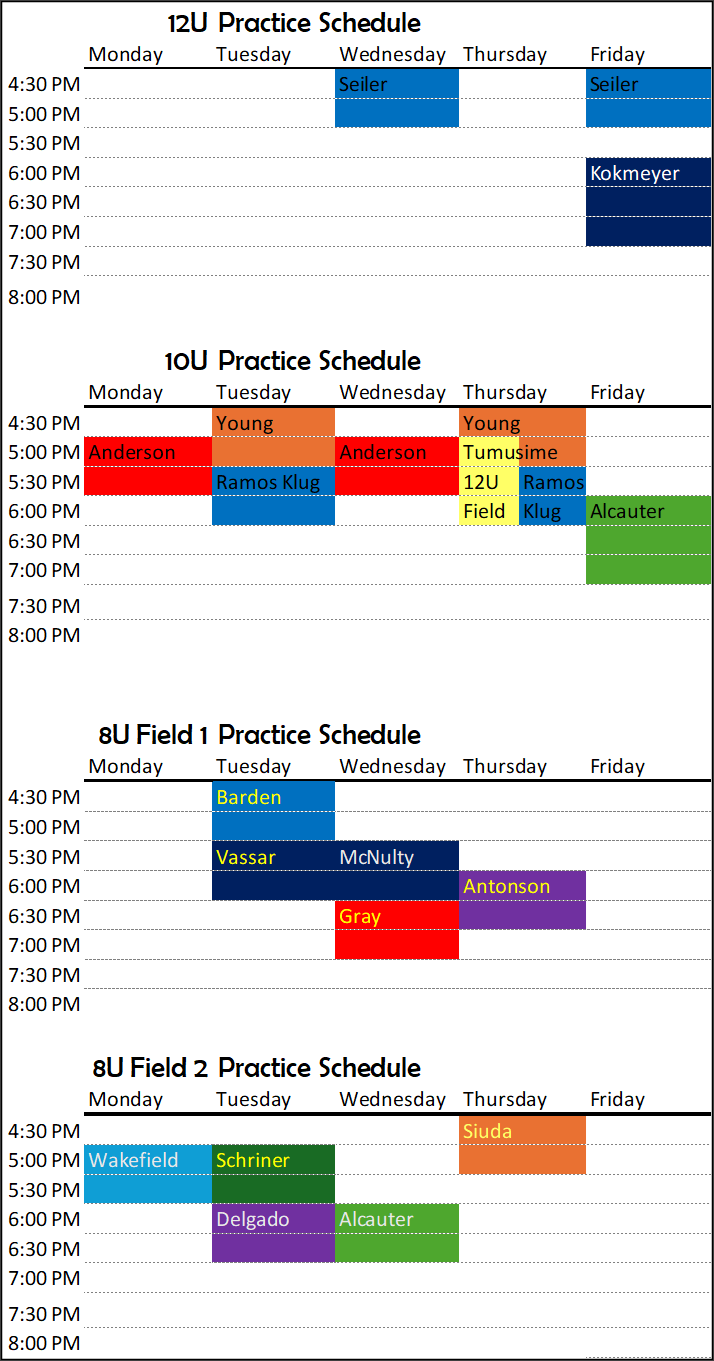 Practice Schedules